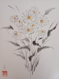 Aunque es octubre el día sopla invernal. Vamos a comprar a la floristería dos planteles de pensamientos - violeta y amarillo - y un ramo de margaritas blancas. El viento produce un vaivén en las flores que me recuerda a las mariposas.